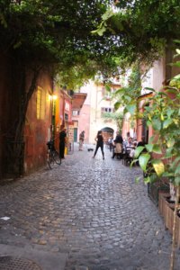 Nagy kedvenc volt a Trastevere negyed – ide háromszor is visszamentünk, szerintem nem szabad kihagyni! Igazi olasz hangulat, szűk, kanyargó utcák, házak között kifeszített kötélen száradó ruhák, fura képek a házak falán, és tele hangulatos étteremmel, kocsmával!