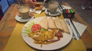 A szálláshoz közel találtunk egy nagyon jó kis bisztrót, többször is reggeliztünk itt, de volt, hogy csak egy kávéra ültünk be, és közben néztük az embereket. Nagyon ajánlom ezt a helyet, nagyon fini szendvicseket ettünk, és aminek a férjem nagyon örült volt rántotta (rántotta fan). Simán tudnék minden nap itt reggelizni… És egy csomó mindent meg sem tudtam kóstolni 🙁